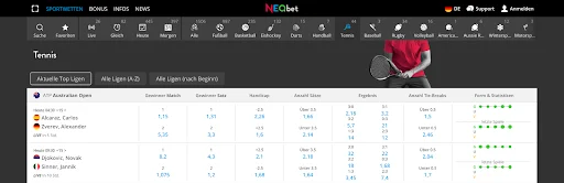 - Tennis Wetten online sind in Deutschland beliebt