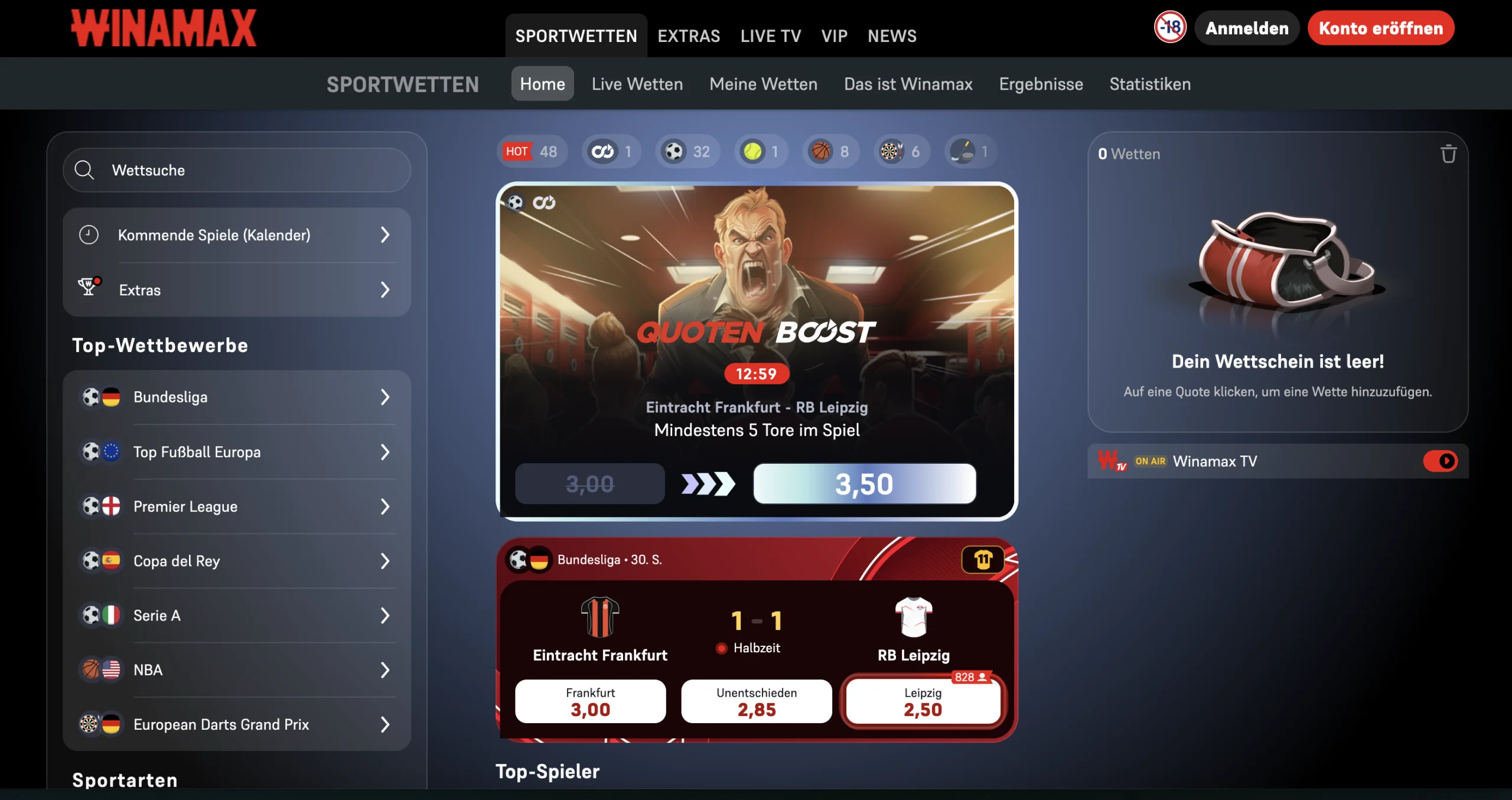 - Live Wetten mit Quoten in Echtzeit